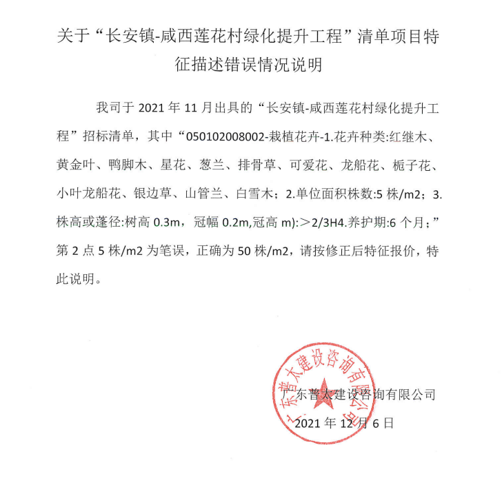 长安镇-咸西莲花村绿化提升工程更正说明