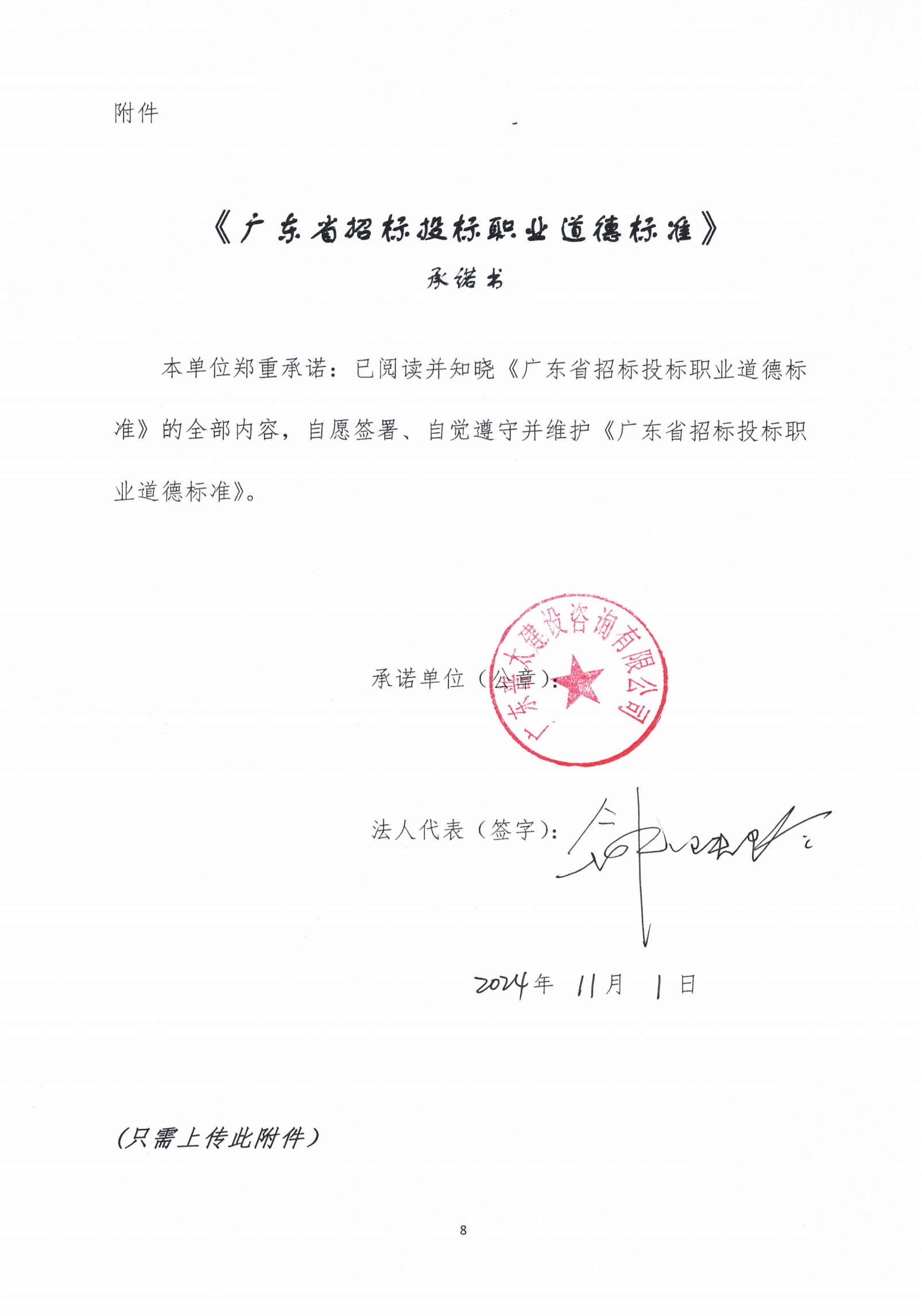 广东省招标投标职业道德标准承诺书
